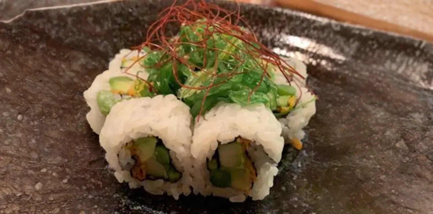 A classic Japanese appetizer featuring fresh, vibrant green wakame seaweed, marinated in a light, savory dressing typically made with sesame oil, soy sauce, rice vinegar, and often garnished with toasted sesame seeds. It offers a refreshing, slightly sweet, and tangy flavor with a distinct chewy texture.