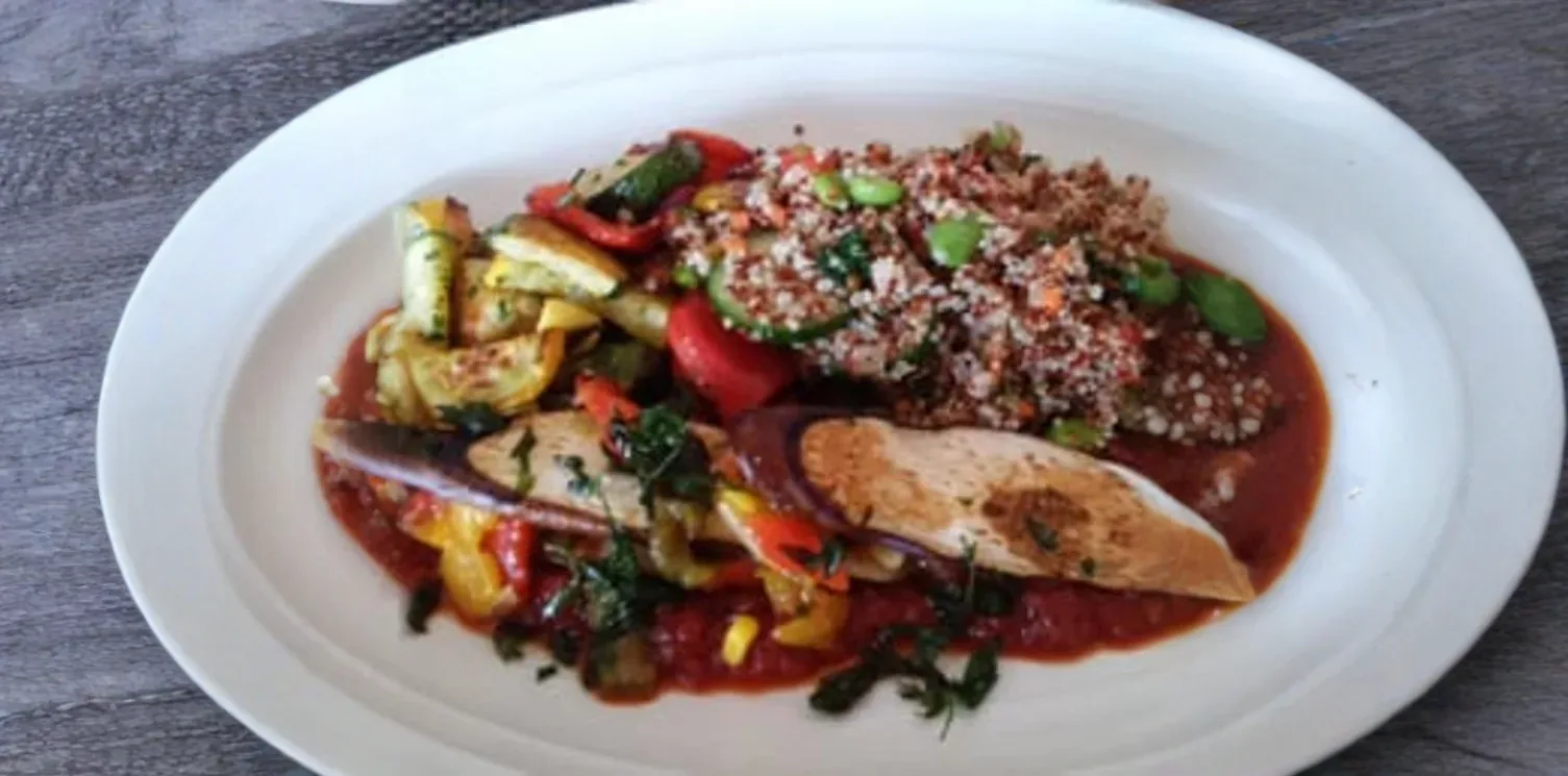 A vibrant assortment of chef-selected seasonal vegetables, expertly prepared to highlight their natural flavors and textures. This wholesome plate features a thoughtful blend of roasted, grilled, and lightly blanched vegetables, perhaps complemented by a delicate herb dressing or a light vinaigrette. A perfect choice for a fresh and satisfying meal.