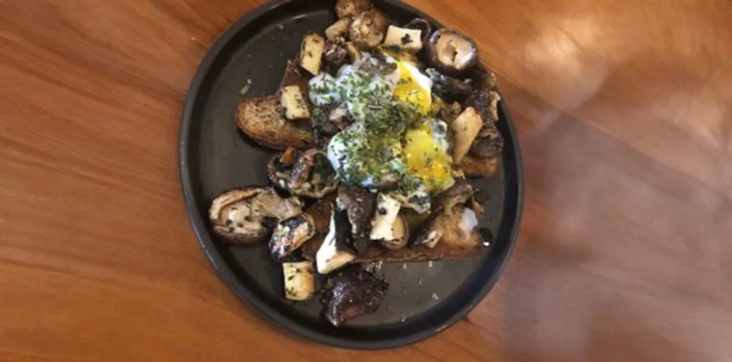 A sophisticated take on a classic, featuring an assortment of wild and cultivated mushrooms expertly sautéed with aromatic herbs and garlic, piled high on a slice of perfectly toasted artisanal bread. Finished with a delicate drizzle of truffle oil and a sprinkle of fresh chives, offering an earthy and comforting appetizer or light meal.