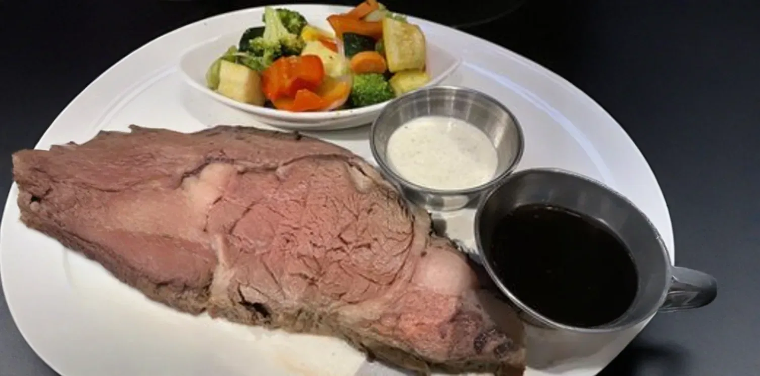 Savor Firebirds' signature Prime Rib, aged for exceptional tenderness and slow-roasted in-house daily over a wood fire to achieve a perfect medium-rare doneness. This succulent cut is renowned for its rich flavor and melt-in-your-mouth texture, served with its natural au jus and a side of creamy horseradish sauce for a truly memorable dining experience.