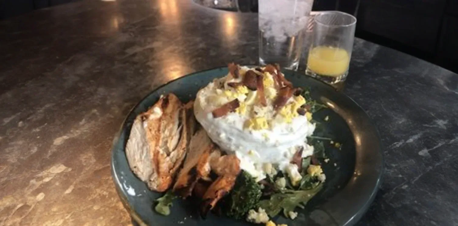 Savor our perfectly seasoned and char-grilled chicken breast, served on a toasted brioche bun. This wholesome sandwich is layered with fresh crisp lettuce, ripe tomatoes, red onion, and a touch of our signature roasted garlic aioli, creating a delicious and satisfying meal.