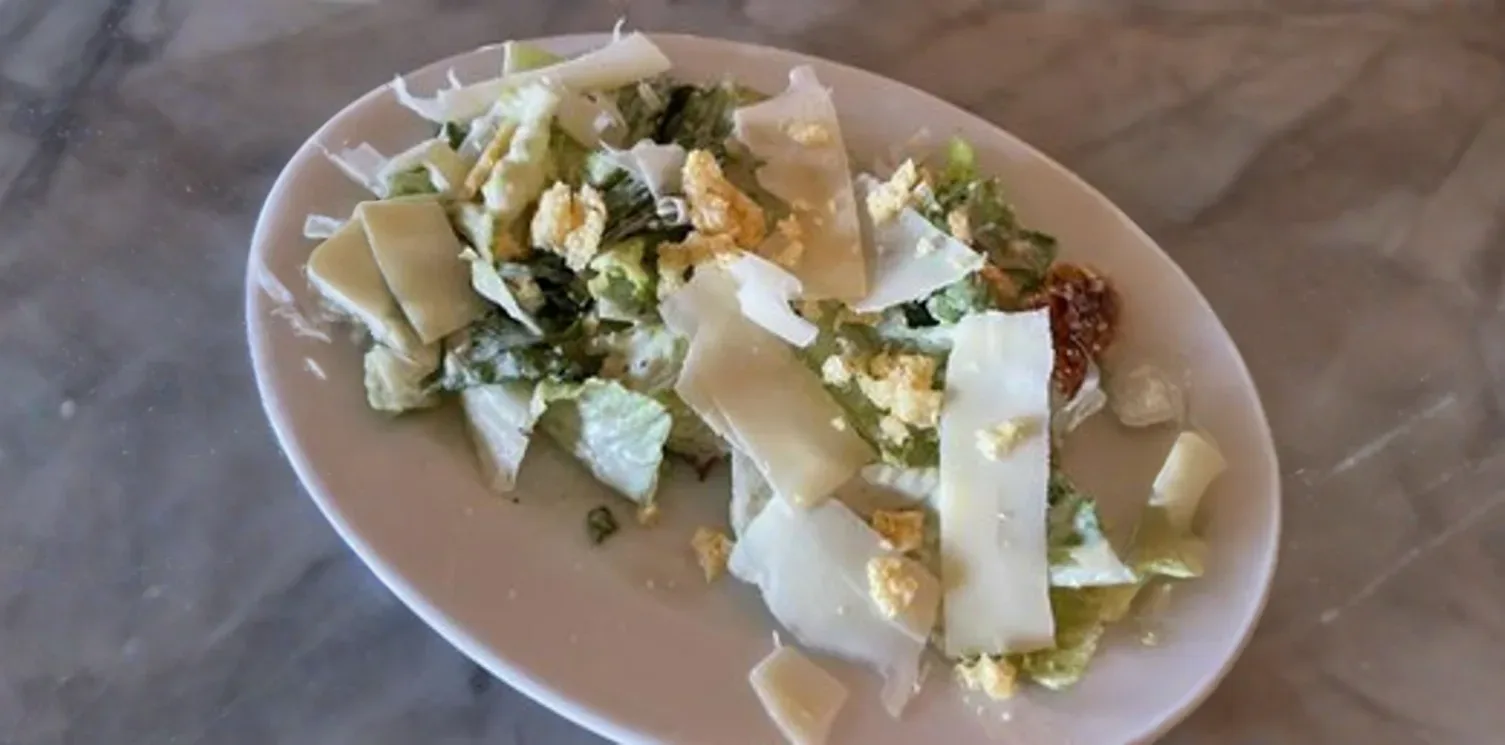Crisp hearts of romaine lettuce tossed in a creamy, zesty Caesar dressing, garnished with crunchy garlic croutons and a generous sprinkling of freshly grated Parmesan cheese, offering a refreshing and classic side.