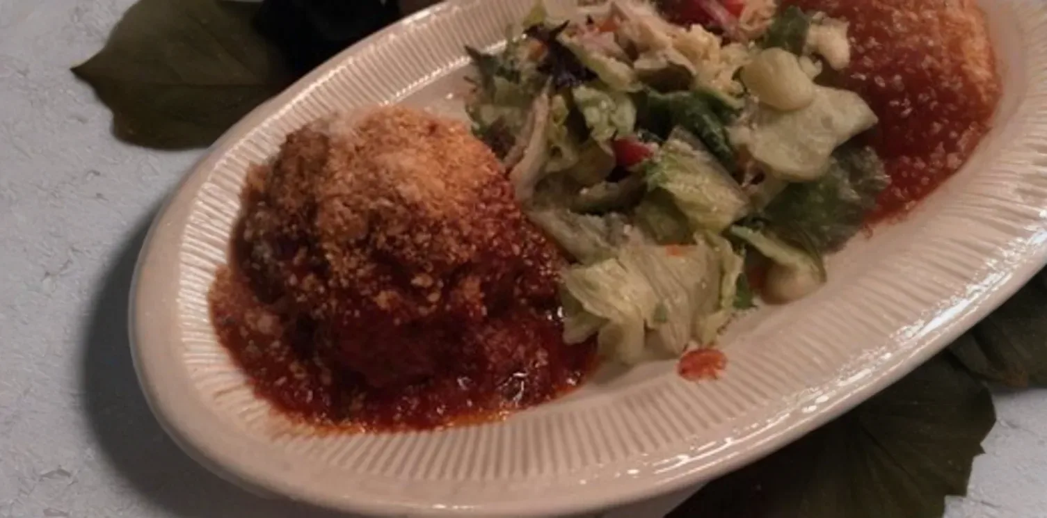 A vibrant and fresh salad featuring a medley of crisp mixed greens, juicy cherry tomatoes, refreshing cucumber slices, thinly sliced red onions, and Kalamata olives, all lightly tossed in Marcella's house-made Italian vinaigrette, perfect for any day of the week.