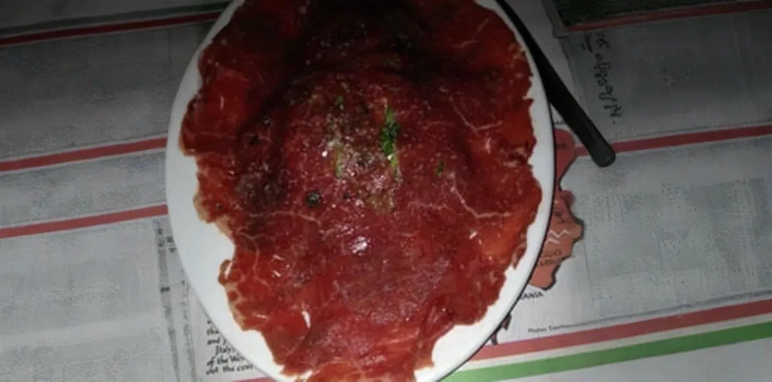 Exquisitely thin slices of raw, high-quality beef tenderloin, artfully arranged and typically dressed with a delicate drizzle of extra virgin olive oil, capers, fresh arugula, and generous shavings of Parmigiano Reggiano. This delicate Italian appetizer is celebrated for its refined flavors and elegant presentation.