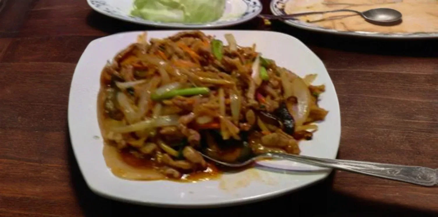 A tantalizing dish showcasing tender slices of chicken breast wok-tossed with a colorful medley of crisp bell peppers, bamboo shoots, and wood ear mushrooms. Bathed in a vibrant, complex Yu Hsiang sauce that offers a perfect balance of spicy, sweet, sour, and savory garlic notes, creating an unforgettable flavor profile.