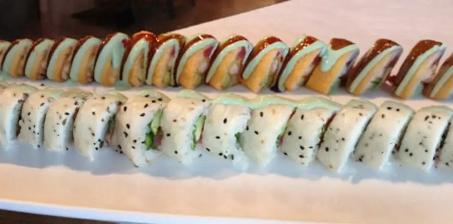 Experience an exotic culinary journey with the Pyramid of Egypt Special Roll. This uniquely crafted roll features a luxurious blend of succulent shrimp tempura, creamy avocado, and delicate cream cheese, all artfully layered and topped with a vibrant spicy crab salad. Finished with a drizzle of sweet eel sauce and a sprinkle of crispy tempura flakes, this visually stunning and flavor-packed creation promises an unforgettable taste of Ronin Sushi's artistry.