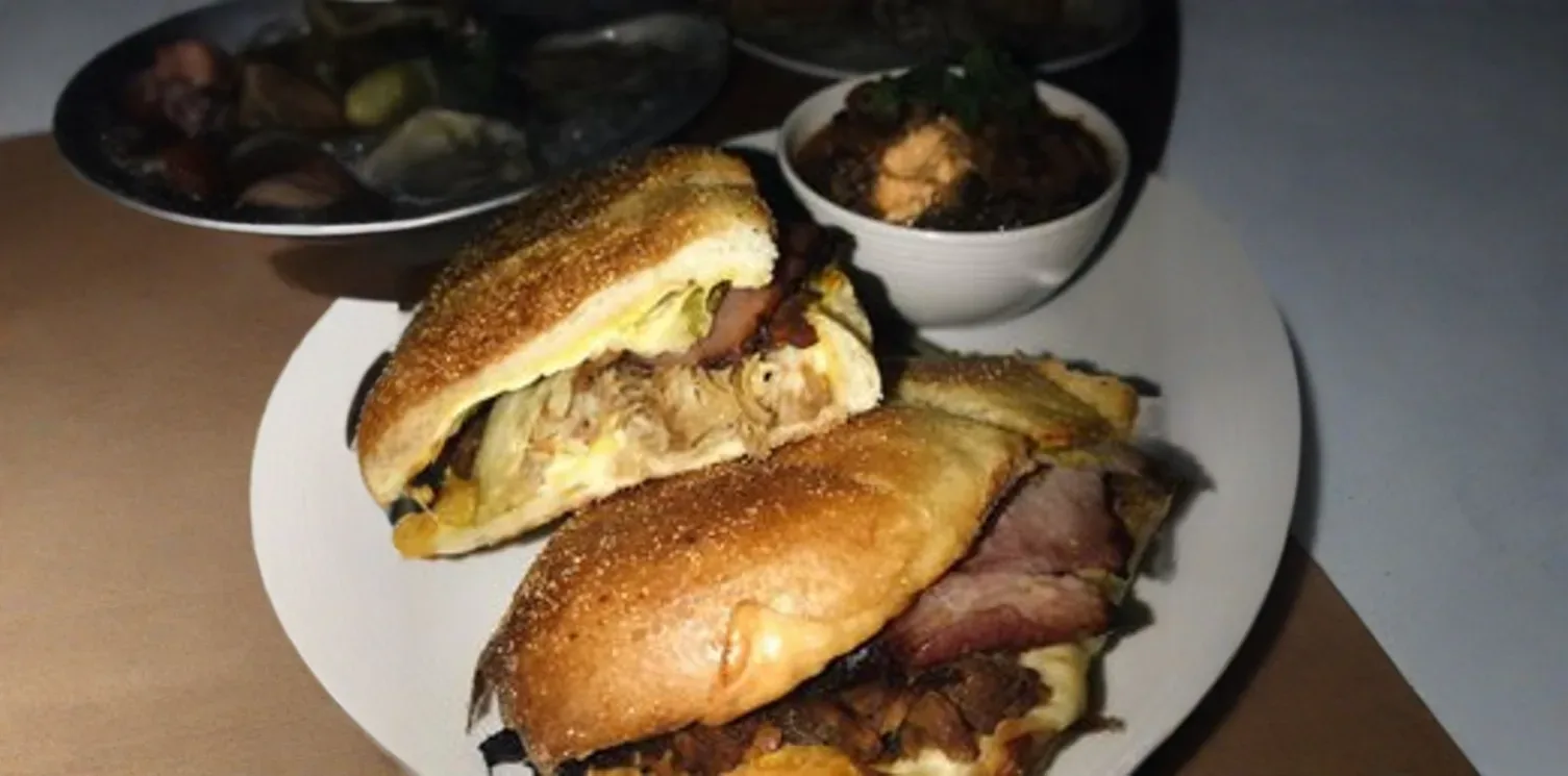 A true classic, The Pearl's Cuban Sandwich features layers of succulent slow-roasted pork, savory ham, melted Swiss cheese, tangy pickles, and yellow mustard, all pressed between perfectly toasted Cuban bread until golden and crisp. A robust and satisfying sandwich with a delightful combination of textures and flavors.
