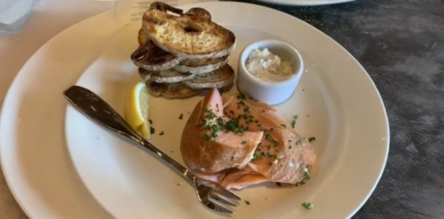 Delicately cold-smoked salmon, artfully arranged and served with traditional accompaniments such as briny capers, thinly sliced red onion, a dollop of crème fraîche, and a side of toasted artisan bread. A light and elegant choice perfect for sharing.