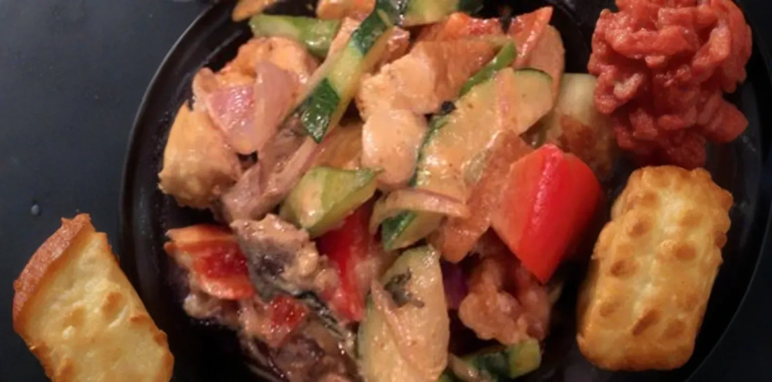 A vibrant and customizable stir-fry dish, prepared in a traditional wok with your choice of protein and a colorful medley of fresh vegetables, all tossed in a fiery and savory sauce that delivers a perfect balance of heat and flavor.