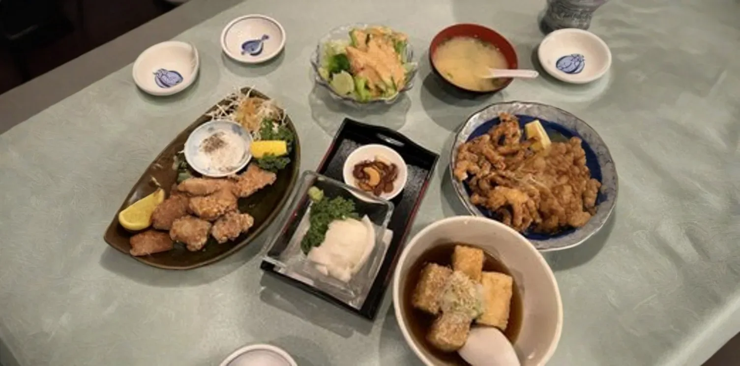 A delightful Japanese appetizer featuring soft tofu lightly dusted with potato starch and deep-fried to a delicate crisp. It's served in a warm, savory dashi-based tentsuyu broth, often garnished with grated daikon radish, fresh ginger, finely chopped green onions, and bonito flakes, offering a harmonious blend of textures and umami flavors.
