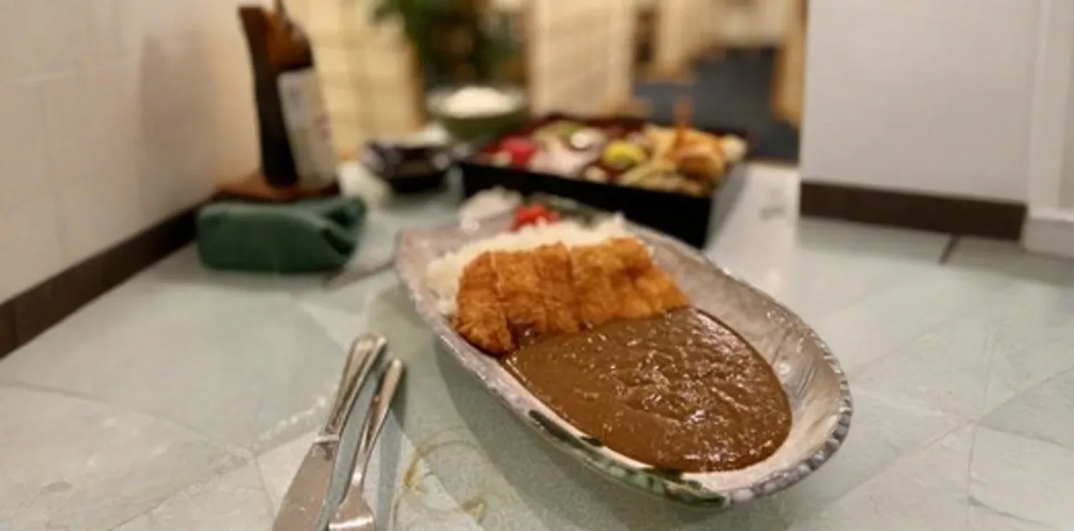 A beloved Japanese comfort food, combining crispy chicken katsu with a rich and aromatic Japanese curry. The dish features a juicy, panko-breaded chicken cutlet, deep-fried to a perfect golden crisp, served alongside a hearty portion of steamed white rice and generously smothered in a thick, savory, and slightly sweet Japanese curry sauce, creating a satisfying and flavorful meal.